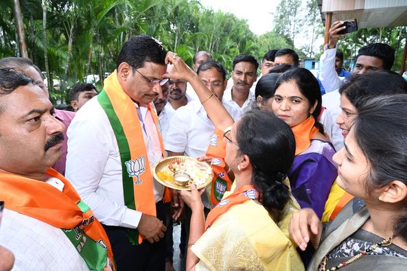 भाजपाचे माजी अध्यक्ष डॉ.बी.के.नाईक, माजी जिल्हाध्यक्ष श्री.सदाशिवजी खाडे, संघाचे वरिष्ठ पदाधिकाऱ्यांचे घरी भेट देऊन शुभाशिर्वाद घेतले